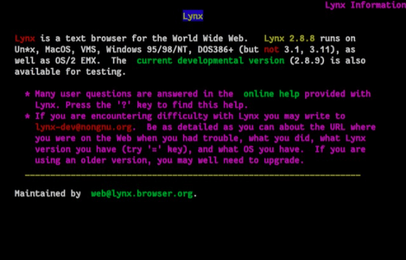 As the oldest browser with ongoing support, Lynx operates on a text-based system, devoid of a graphical user interface (GUI). It stands out as the most lightweight browser on the list, making it ideal for coders and backend developers who prioritize resource allocation.
