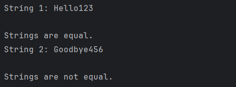 In this situation, the strings entered by the user are ‘hello’ and ‘apple,’ in that order. The ‘==’ operator compares the two strings and returns a flag indicating that both strings are different.
