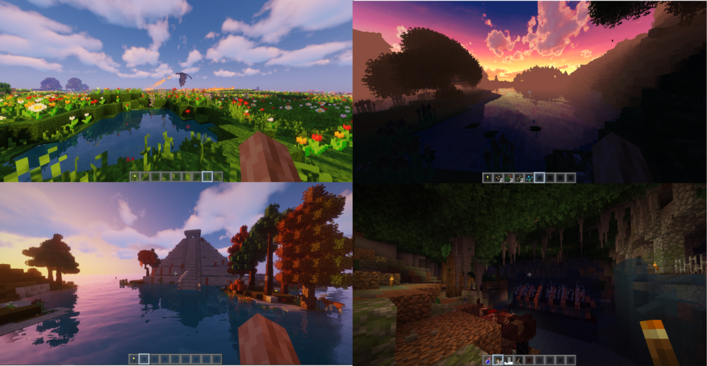 Visual Mods: Visual mods revolutionize the Minecraft aesthetic, enabling players to customize the game’s appearance according to their preferences. Shader packs enhance graphics with realistic lighting, shadows, and textures, delivering a visually stunning experience. Texture packs provide the flexibility to customize in-game textures, transforming the visual landscape.