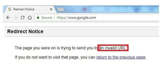 4. Inaccurate URL: