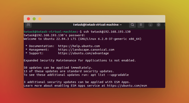 In my case, the username is twtask, and the server IP is 192.168.193.130.